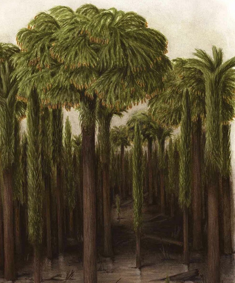 Rekonstruktion von arboreszenten Lycophyten aus den paläotropischen Kohlesümpfen Euramerikas im Pennsylvanium (©Annette Townsend).